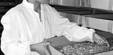 孟翠紅正在翻檢黃粉蟲(chóng)蟲(chóng)蛹 蟲(chóng),密密麻麻,成千上萬(wàn),不停蠕動(dòng),讓人眼暈,這些狀如蚯蚓的蟲(chóng)子叫黃粉蟲(chóng)。 孟翠紅用手輕輕撥弄著蟲(chóng)子,不時(shí)翻檢出一些蟲(chóng)蛹,細(xì)心觀察著蟲(chóng)子的狀況