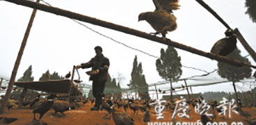 購(gòu)貨商涉嫌非法吸收公眾存款被刑拘,縣政府正積極為這些山雞尋找出路 山雞“飛”不進(jìn)市場(chǎng),養(yǎng)殖戶著急。記者 冉文 攝 年初,九龍坡區(qū)楊家坪婦女楊巧靈(化名)