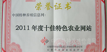 中國特種養(yǎng)殖信息網(wǎng)榮獲全市2011年度十佳特色農(nóng)業(yè)網(wǎng)站