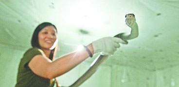 楊靜說,這種水律蛇很溫順,她們經(jīng)常一起玩 7月29日,四川男子周以輝不慎被眼鏡蛇咬傷,27小時后,來自廣西的抗眼鏡蛇毒血清空運至成都,救了他一命。提起劇毒的眼鏡蛇,很多人聞