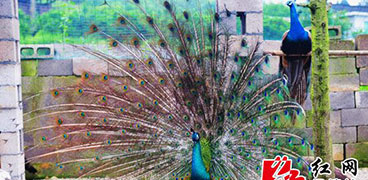 一個名叫周瓊的女人,擁有一個藍(lán)孔雀“王國”。5月13日,筆者騎著摩托車,取道筆架山下,沿著綠樹掩映的鄉(xiāng)間公路騎行,來到了保靖縣復(fù)興鎮(zhèn)那甫村。從公路拐上約10米,在