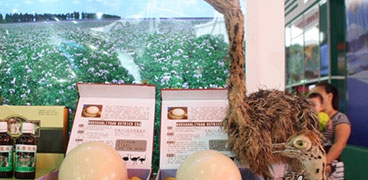 原產(chǎn)于非洲沙漠地帶的鴕鳥,首次引進五大連池高緯度寒地并馴養(yǎng)成功。在哈洽會A廳的一個展位上,記者印證了這個消息,見識了五大連池出產(chǎn)的世界上最大的蛋鴕鳥蛋?! ▲r鳥蛋