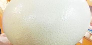 11月12日上午,記者走訪雅斯購物廣場東山店時(shí),在蛋類專柜發(fā)現(xiàn)了一個(gè)“巨無霸”,一問竟是鴕鳥蛋,一個(gè)售價(jià)180元?! ∮浾呖吹进r鳥蛋的周身成乳白色,表層有坑坑洼洼