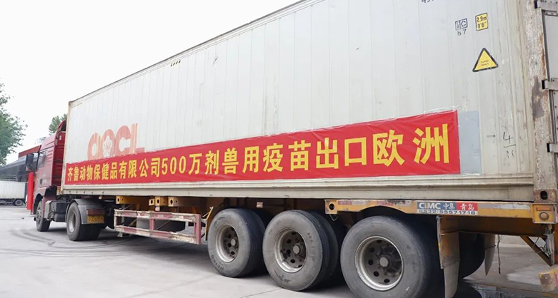 4月24日下午,伴隨著一聲清脆的鳴笛,裝載著約500萬劑獸用疫苗產(chǎn)品的運(yùn)輸車緩緩駛出齊魯動保公司大門,發(fā)往歐洲市場。 出庫、打包、編號、裝車,看著約15米長的冷鏈運(yùn)輸車緩