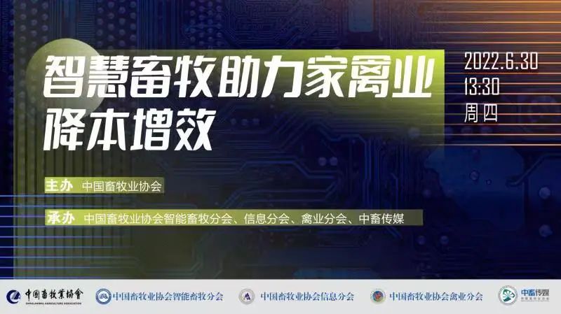 6月30日,由中國畜牧業(yè)協(xié)會主辦,中國畜牧業(yè)協(xié)會智能畜牧分會、信息分會、禽業(yè)分會、中畜傳媒共同承辦的“智慧畜牧助力家禽業(yè)降本增效”在中畜傳媒直播間線上召