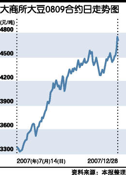 國內市場方面,2008年糧食和植物油的供應仍將處于偏緊狀態(tài)。由于天氣等方面的原因,2007年國內大豆產(chǎn)量不足1400萬噸,中國大豆產(chǎn)業(yè)嚴重依賴國際市場,2007年中國大豆進口量接近3600萬噸,此外中國近一半的植物油來自進口,2008年國際市場油籽油料強勁的走勢必將拉動國內市場價格。