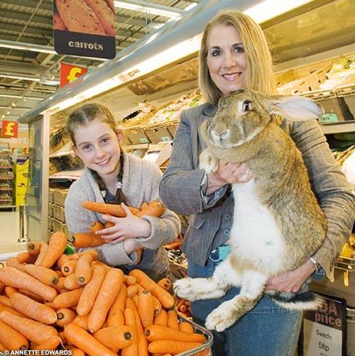 然而,這只4歲大的巨兔最終在2月被自己的伴侶艾米擊敗。由于身體過于龐大,艾米不得不睡在外面的狗窩里。每天,愛德華茲都要準(zhǔn)備足夠的兔食放到狗食碗里,除了兩個(gè)蘋果外,就是大量胡蘿卜、半顆卷心菜和新鮮干草。雖然食量驚人,但55歲的愛德華茲表示,艾米并不是一只超重的兔子,它的飲食習(xí)慣很健康。據(jù)悉,每天給艾米準(zhǔn)備的口糧價(jià)格高達(dá)10英鎊。