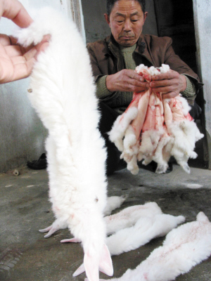 于先生說,今年10月初,他在即墨西上莊包了塊地建起養(yǎng)兔場,專門飼養(yǎng)可回收毛皮的獺兔。1
