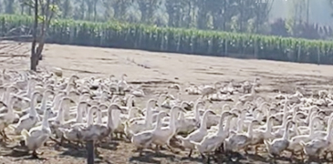 秋風(fēng)習(xí)習(xí),陽(yáng)光和煦。近日,山西省長(zhǎng)治市武鄉(xiāng)縣洪水鎮(zhèn)熬垴村,一塊400畝的旱地中央,簇新的鋼架鵝大棚格外醒目。棚內(nèi),3000多只羽翼漸豐的三花鵝拍打著翅膀歡騰覓食,“嘎嘎嘎