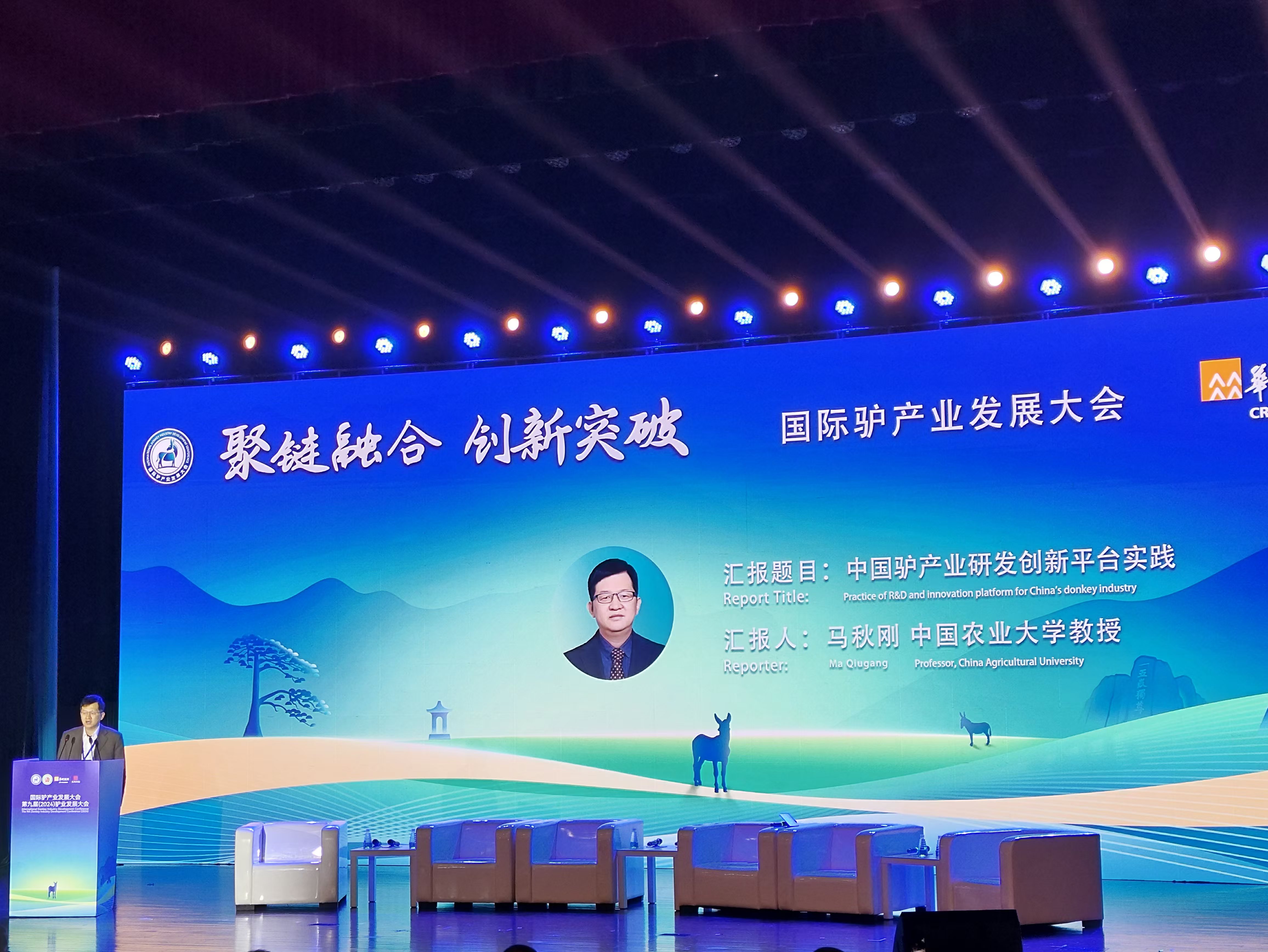 在國際驢產(chǎn)業(yè)發(fā)展大會上,馬秋剛教授再次登臺,發(fā)表了題為“中國驢產(chǎn)業(yè)研發(fā)創(chuàng)新平臺實踐報告”的演講。他全面介紹了中國驢產(chǎn)業(yè)的發(fā)展模式和實踐情況,包括國家級、省級、地市級研發(fā)平臺和項目經(jīng)費支持,校企合作平臺和橫向項目經(jīng)費支持,以及最新研究成果的落地轉(zhuǎn)化情況和國際合作前景展望。這一報告不僅展示了中國在驢產(chǎn)業(yè)研發(fā)創(chuàng)新方面的顯著成就和豐富經(jīng)驗,也為國際驢產(chǎn)業(yè)的合作與發(fā)展提供了有益參考。